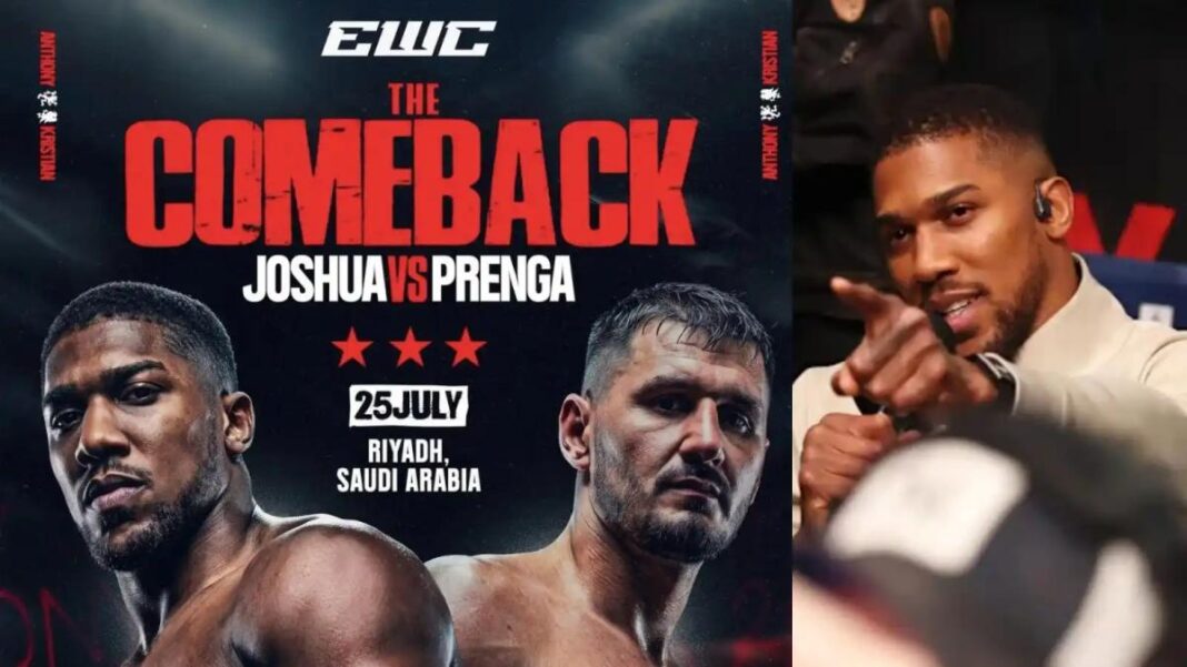 Former heavyweight world champion, Anthony Joshua, is set to make his return to professional boxing on July 25, 2026, when he faces Albanian heavyweight Kristian Prenga in Riyadh, Saudi Arabia.