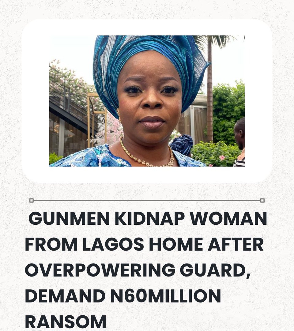 BREAKING: GUNMEN KIDNAP WOMAN FROM LAGOS HOME AFTER OVERPOWERING GUARD, DEMAND N60MILLION RANSOM