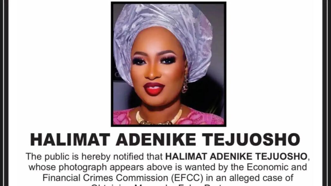 The Economic and Financial Crimes Commission (EFCC) has declared a Lagos indigene, Halimat Tejuosho, wanted over allegations of obtaining money by false pretence.