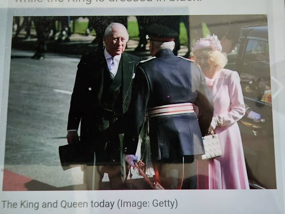 Charles and Camilla were greeted by the Lord-Lieutenant of the Royal County of Berkshire, Andrew Try. The Silver Stick in Waiting, Brigadier Rupert Evetts, and the Field Officer in Brigade Waiting, Colonel Guy Stone, are present.