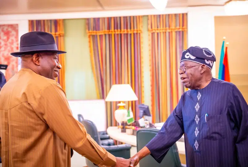President Bola Tinubu on Wednesday met with former President Goodluck Jonathan at the Presidential Villa, Abuja.