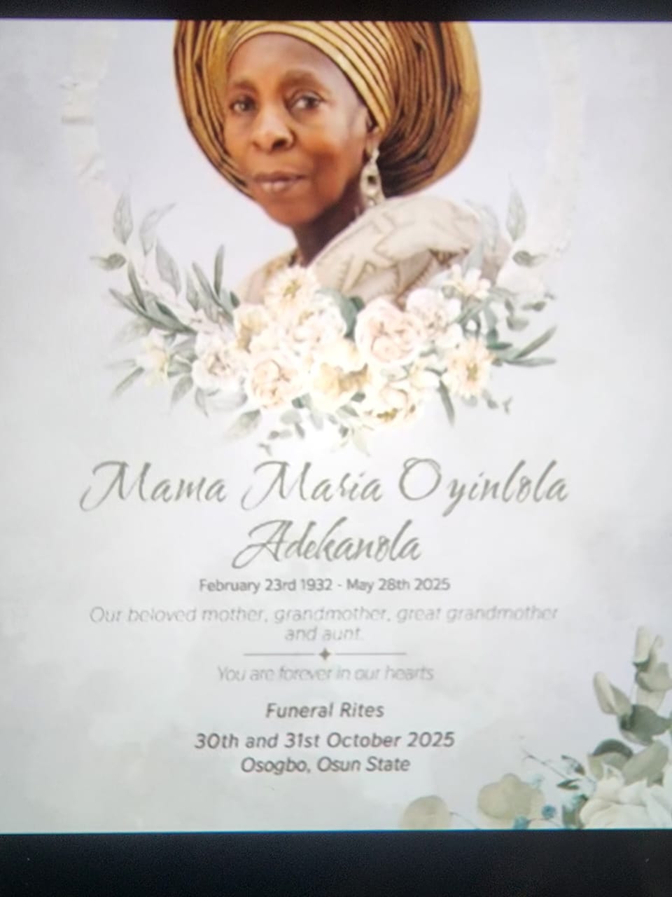 Obsequies and Celebration of Life for Mama Maria Oyinlola Adekanola (1932–2025)