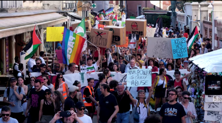 Just a day after Amazon founder Jeff Bezos and Lauren Sánchez exchanged vows in a lavish ceremony in Venice on Friday, a wave of discontent rippled through the historic city. On Saturday, several hundred demonstrators gathered at a train station before marching through the city, sending a clear message to the billionaire couple: they are not welcome.