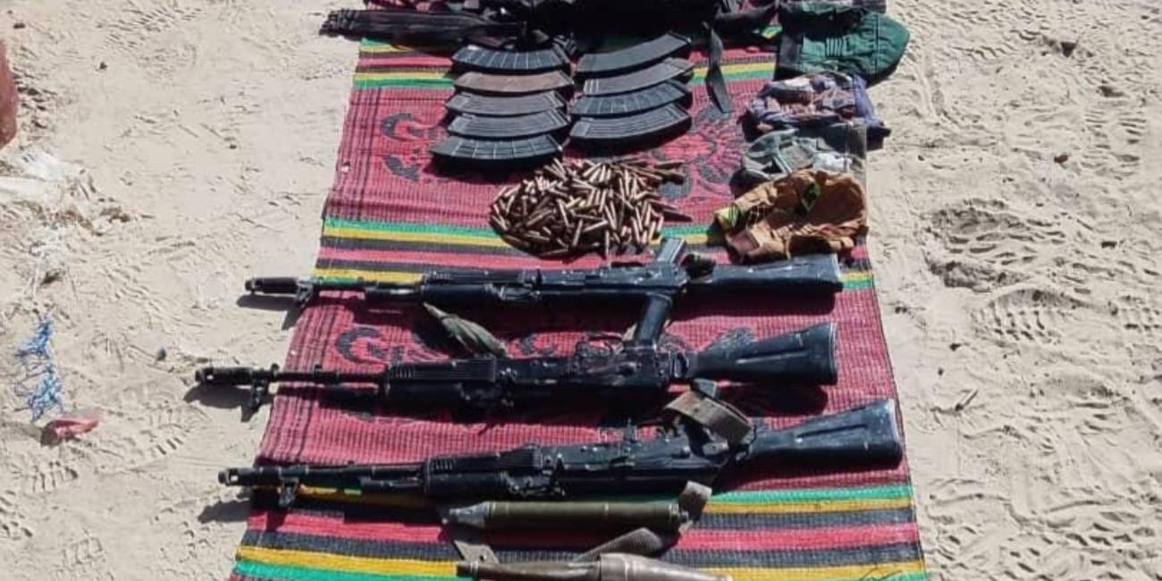 Recovered weapons included five AK-47 rifles, eight magazines, 258 rounds of 7.62mm ammunition, five RPG bombs, four armed drone bombs, five hand grenades, two bandoliers, and a mobile phone.