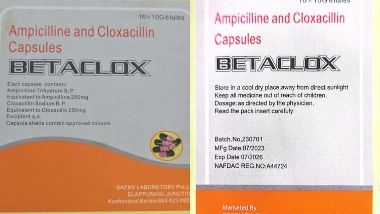 The National Agency for Food and Drug Administration and Control (NAFDAC) has raised an alarm over the circulation of a suspected fake antibiotic, BETACLOX (Ampicillin 250mg and Cloxacillin 250mg), in Nigeria’s drug market.