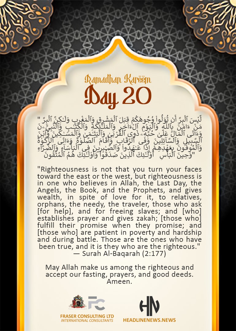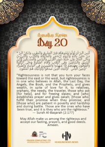The 20th day reminds us that we are nearing the end of Ramadan, and we should make the most of this blessed time to seek Allah’s mercy and forgiveness.