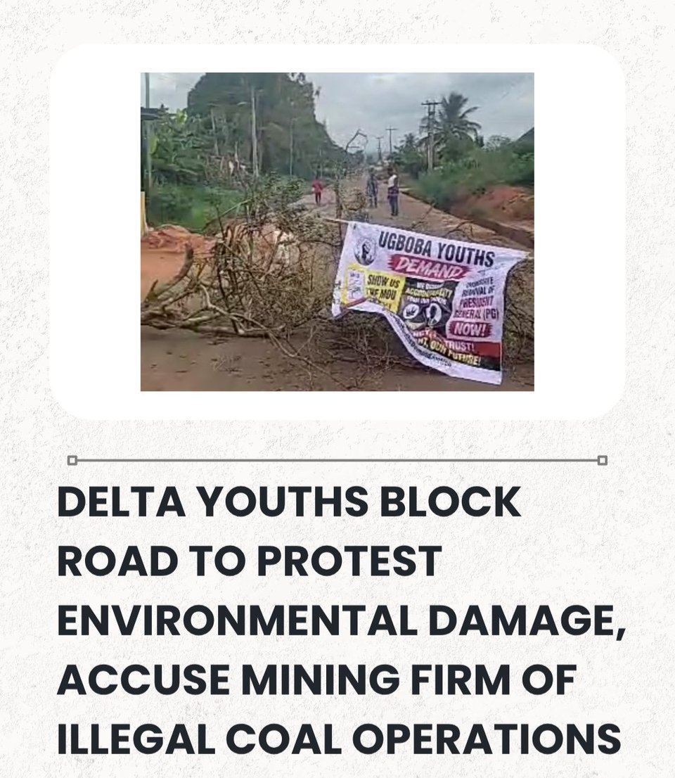 WATCH: Delta Youths Block Road To Protest Environmental Damage, Accuse Mining Firm Of Illegal Coal Operations pic.twitter.com/1s1eKq1iHY