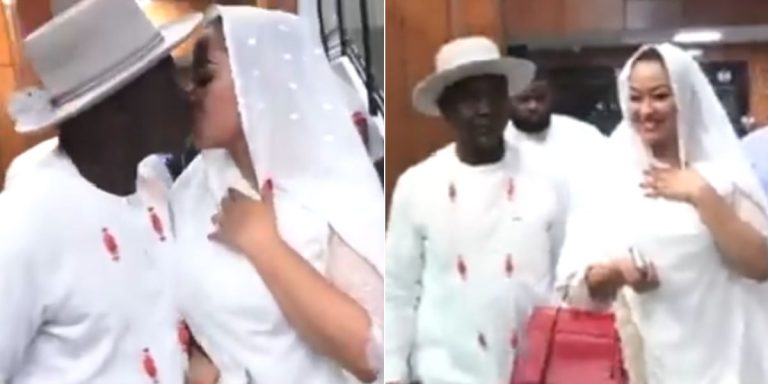 Kogi Central Senator, Natasha Akpoti-Uduaghan has made a dramatic return to the Senate as she shared heartfelt kiss with her husband, Emmanuel Oritsejolomi Uduaghan as she stepped into the chambers.