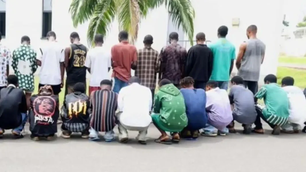 The suspects, which include two alleged leaders and several trainees, were caught during what appeared to be organised training sessions for online fraud activities. Authorities also recovered several items from the location, including mobile phones, 18 laptops, and other electronic devices.