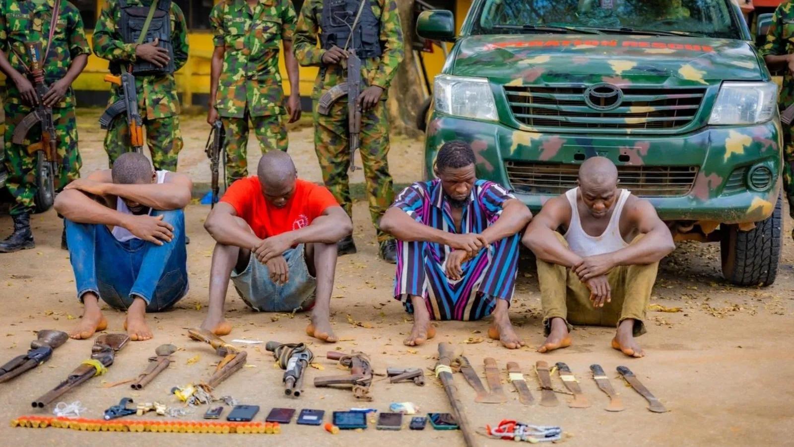 Firearms, vehicles seized as Nigerian Army arrests four suspected kidnappers in Edo