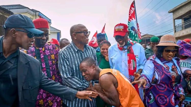 Obi was also seen walking through the streets of Anambra in solidarity with Moghalu despite the rain and poor road conditions, drawing a large crowd of supporters from the Obidient Movement.