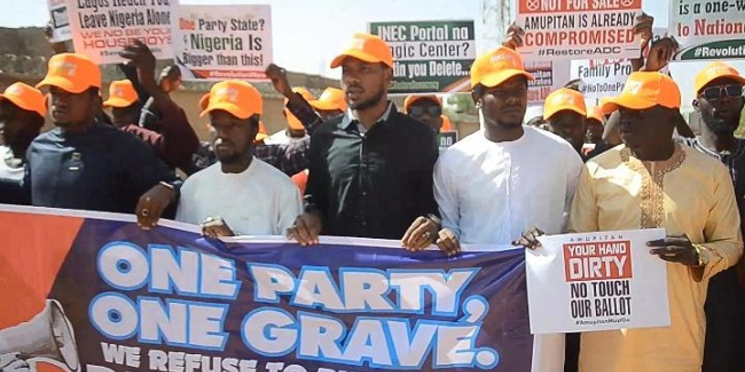 The protesters also demanded the removal of INEC Chairman, Prof. Joash Ojo Amupitan (SAN), accusing the commission of bias and constitutional violations in its handling of party-related disputes.