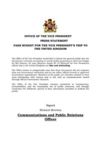 However, the Office of the Vice President firmly denied the claims. In the statement signed by Communications and Public Relations Officer Richard Mveriwa, the office said the documents did not originate from any government institution and did not represent approved government expenditure.
