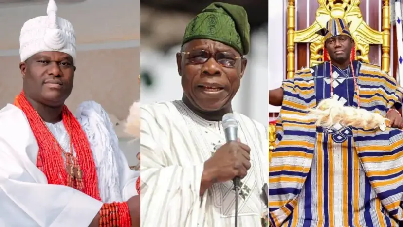A video showing Ooni of Ife, Oba Adeyeye Enitan Ogunwusi Ojaja II, and Alaafin of Oyo, Oba Abimbola Akeem Owoade, greeting former President Olusegun Obasanjo at a recent event has sparked widespread reactions online.