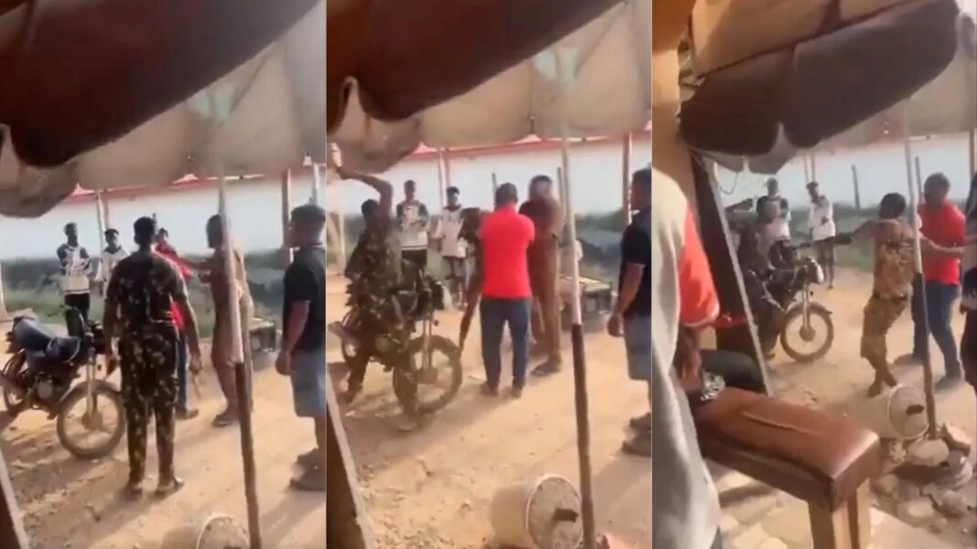 A viral video circulating online shows the moment a Nigerian soldier engaged in a heated argument with a man, pulled out his combat knife, and stabbed him.