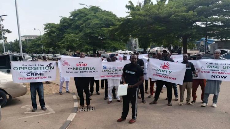 Carrying placards with messages like “Fix PDP, fix Nigeria” and “Save our democracy from intimidation,” the protesters accused the ruling party of targeting opposition members and undermining multi-party democracy.