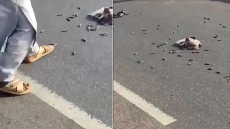 A viral video from the scene shows the ammunition scattered across the road as passersby attempted to move it aside with their feet, despite warnings from someone in the background urging them not to touch it.