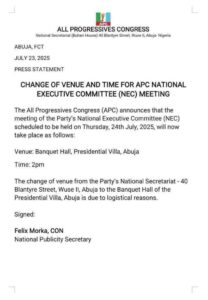 With the NEC meeting set to convene Thursday at the APC National Secretariat in Abuja, all eyes will be on the party’s direction under Tinubu’s leadership. The Wednesday night meeting is likely to have smoothed over any potential turbulence ahead of what could be a pivotal gathering for Nigeria’s ruling party.
