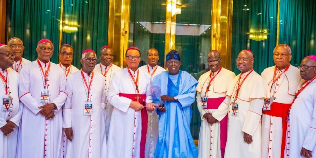 President Bola Ahmed Tinubu held a closed-door meeting with the leadership of the Catholic Bishops Conference of Nigeria (CBCN) at the Presidential Villa in Abuja.