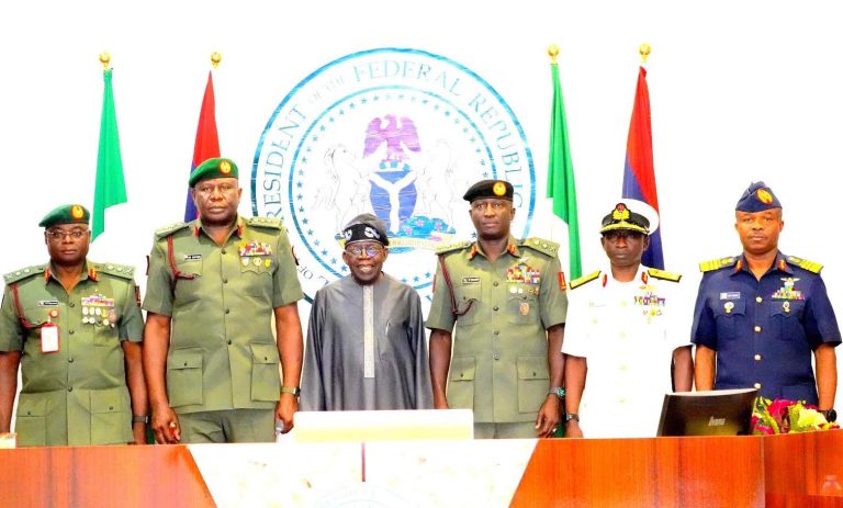 Tinubu praised the military’s sacrifices, noting that their efforts have reclaimed territories and reduced terrorist influence. He urged the service chiefs to work as a team and collaborate with other security agencies to permanently end insecurity.