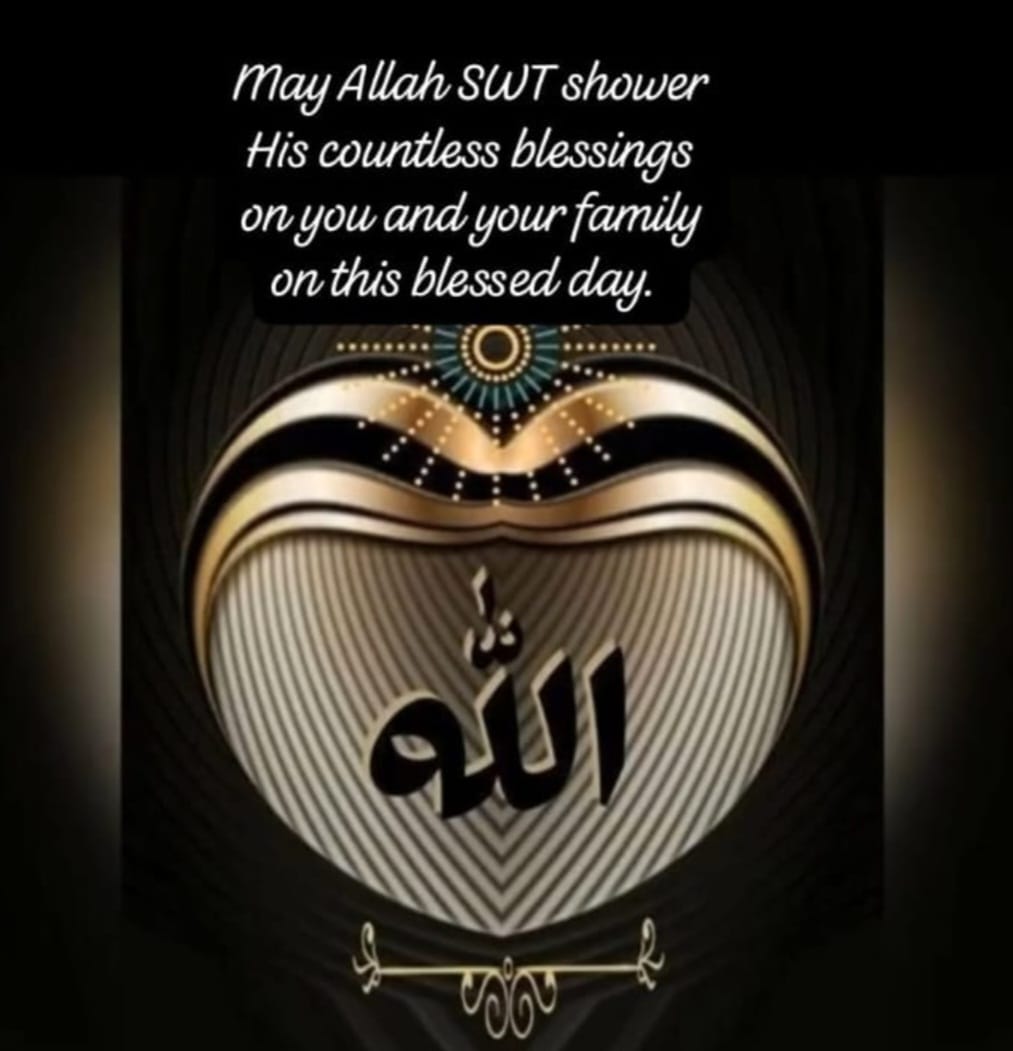 Asalam Alekum, Aliamdulillah Friday is here again, Aliamdulillah Robil Alamin Wa Shukran, May Almighty ALLAH; The Most Merciful Who Hear More than we say, Answers more than we ask, Gives more than We Desire, Forgive all our Sins, Accept our Ibadah, Guide and Protect us, Accomplish all our Positive Aspirations, Gives us long Life, Good Health, Sound Mind and Make our Life of Immense Benefit to Humanity . Ameen Ya Robbi Alamin 🙏