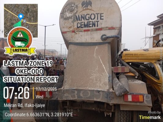 LASTMA’s official statement on X (formerly Twitter) confirmed the crash happened on the inward Meiran Road near PHC. “Two fatalities and several injuries have been reported following the accident involving a Dangote SINO truck, three tricycles, and a minibus,” the agency said.